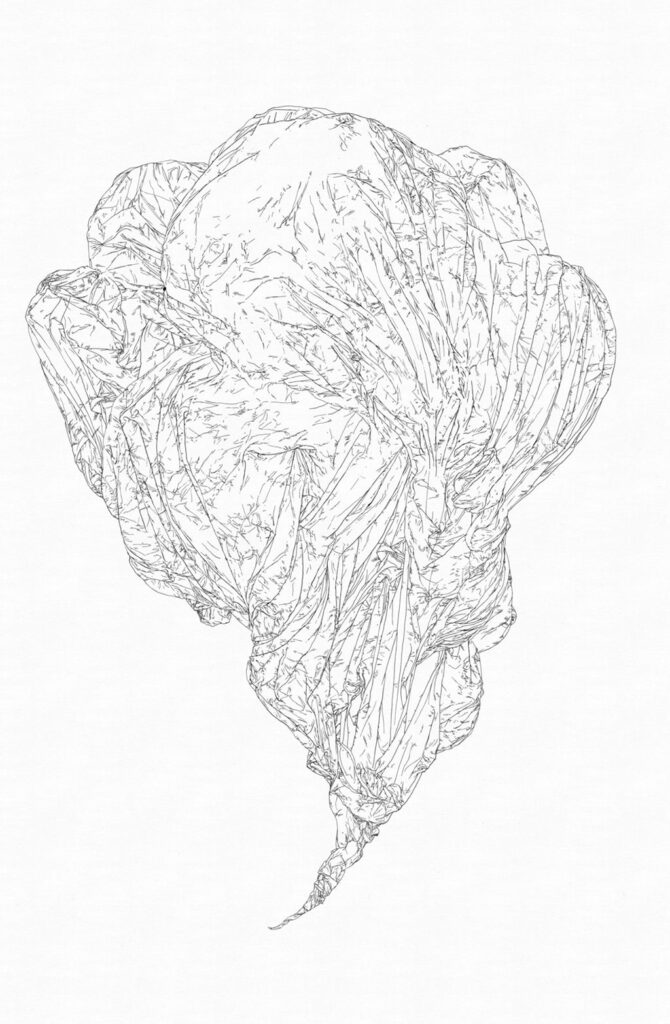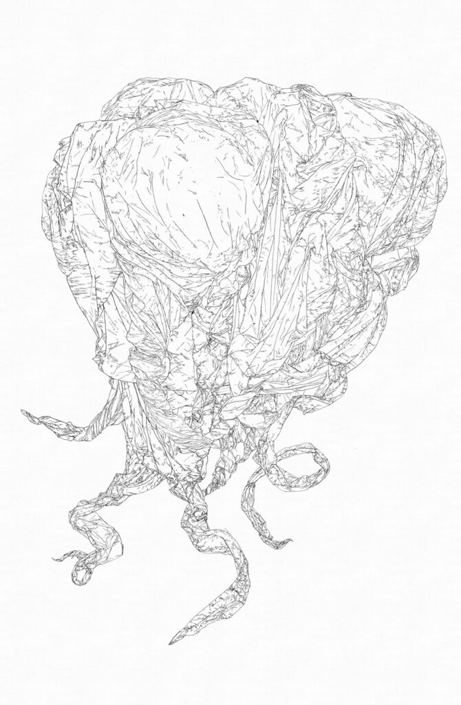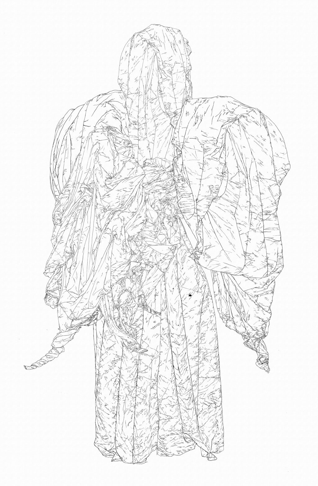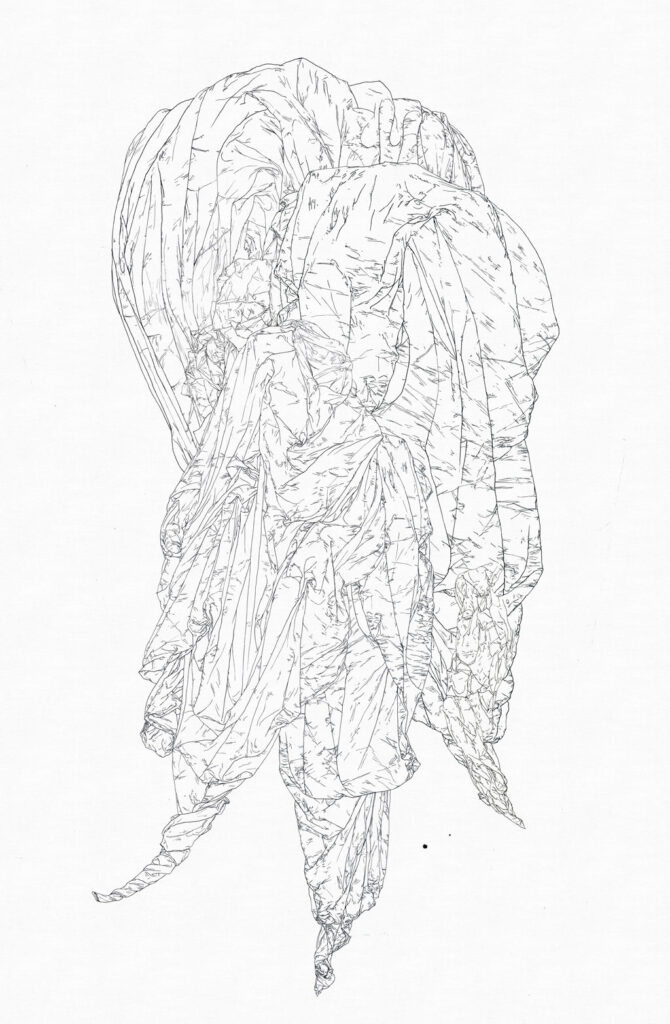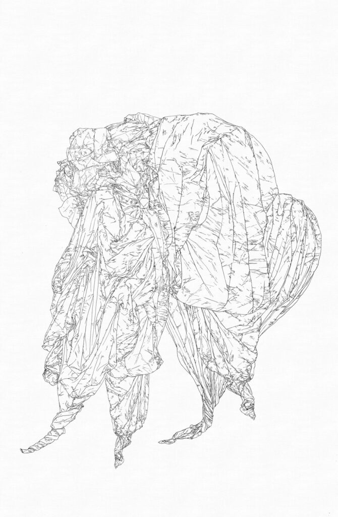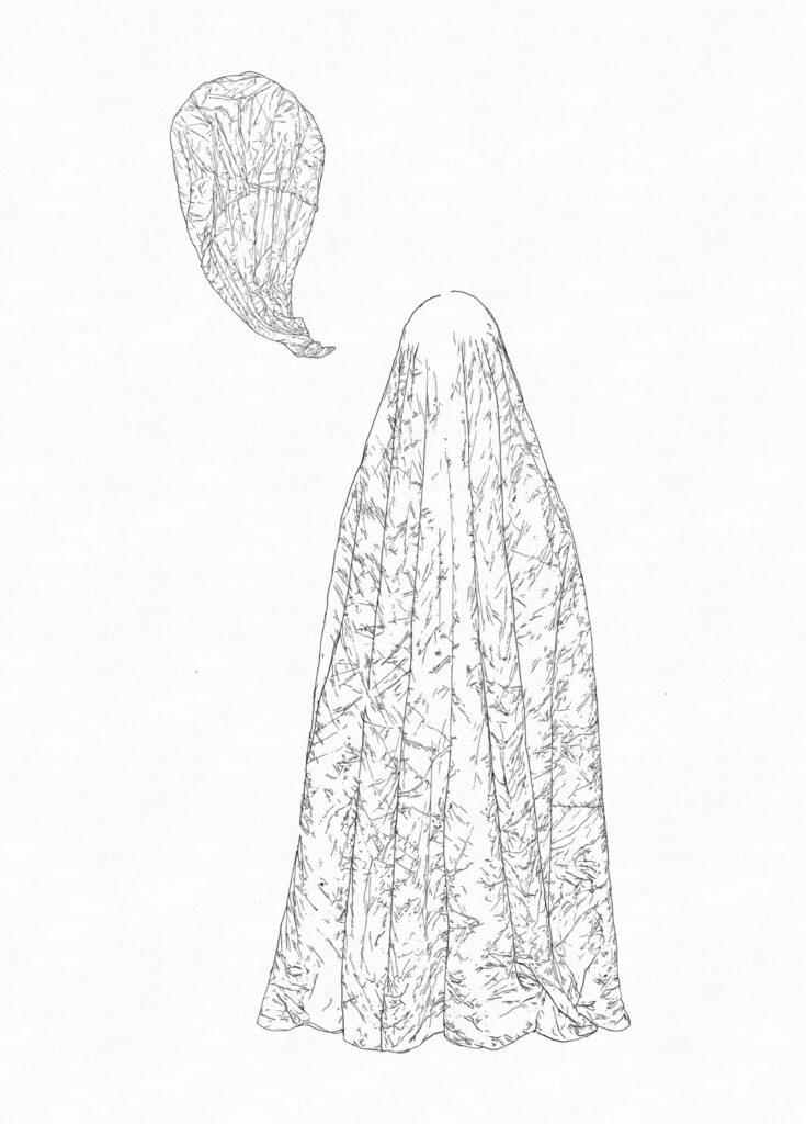 J’ai fabriqué ces formes en tissu et en papier, pour leur donner corps. Des volumes sans contenu, opaques. Des enveloppes vides, détachées de toute parole. À mesure que je les dessinais, elles se sont détachées de leur origine : elles ont commencé à ressembler à autre chose.